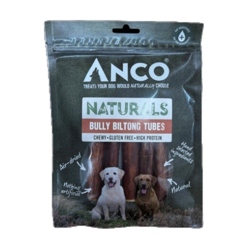 Anco Bully Biltong Tubes are a delicious meat treat with a high concentration of protein and low fat content, you can give these to your dog guilt free! Simply air dried for maximum nutrient retention, also locking in all its natural flavours leaving it with its strong enticing scent that your dog will love.