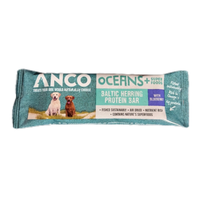 Packing a whole 16g of protein per bar, these are the perfect snack for hiking, days out, camping or just for any reason! Made with herring fished sustainably from the Baltic Sea, they are gently air-dried to retain the natural goodness of the Omega rich fish. Hypoallergenic and easily digestible so are perfectly suitable for dogs with sensitive tummies. On top of that there's added superfood - Blueberry! The reason it's called nature's superfood, is due to all the benefits it has - Blueberries have a high vitamin C content, helps support healthy skin, coat and heart. They are so nutritionally rich that just a small amount gives them a major vitamin C boost. The anti-oxidants in Blueberries can help support the immune system, protect cells from damage by fighting free radicals, improve cognitive function and help to reduce inflammation and prevent disease. Blueberries also contain minerals that help maintain strong bones as well as Vitamin K, which improves calcium absorption.
