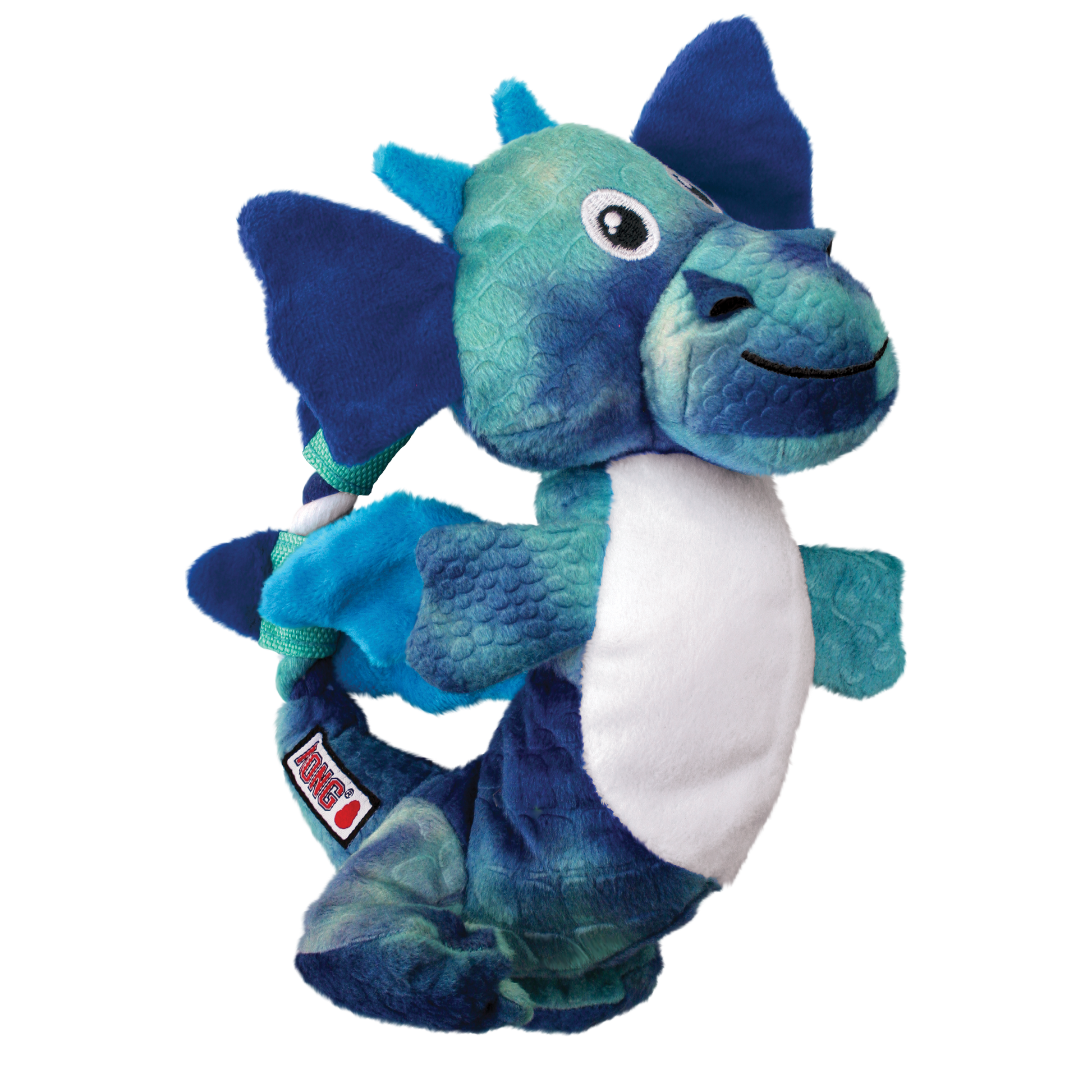 KONG Dragon Knots are a whimsical addition to the Knots collection. The realistic feel of the internal knotted rope, big body squeaker and crinkling sound of the magical wings get dogs geared for play and satisfies their natural instincts. The strong rope knot tug toy has minimal stuffing for less mess and charms with long-lasting fun.